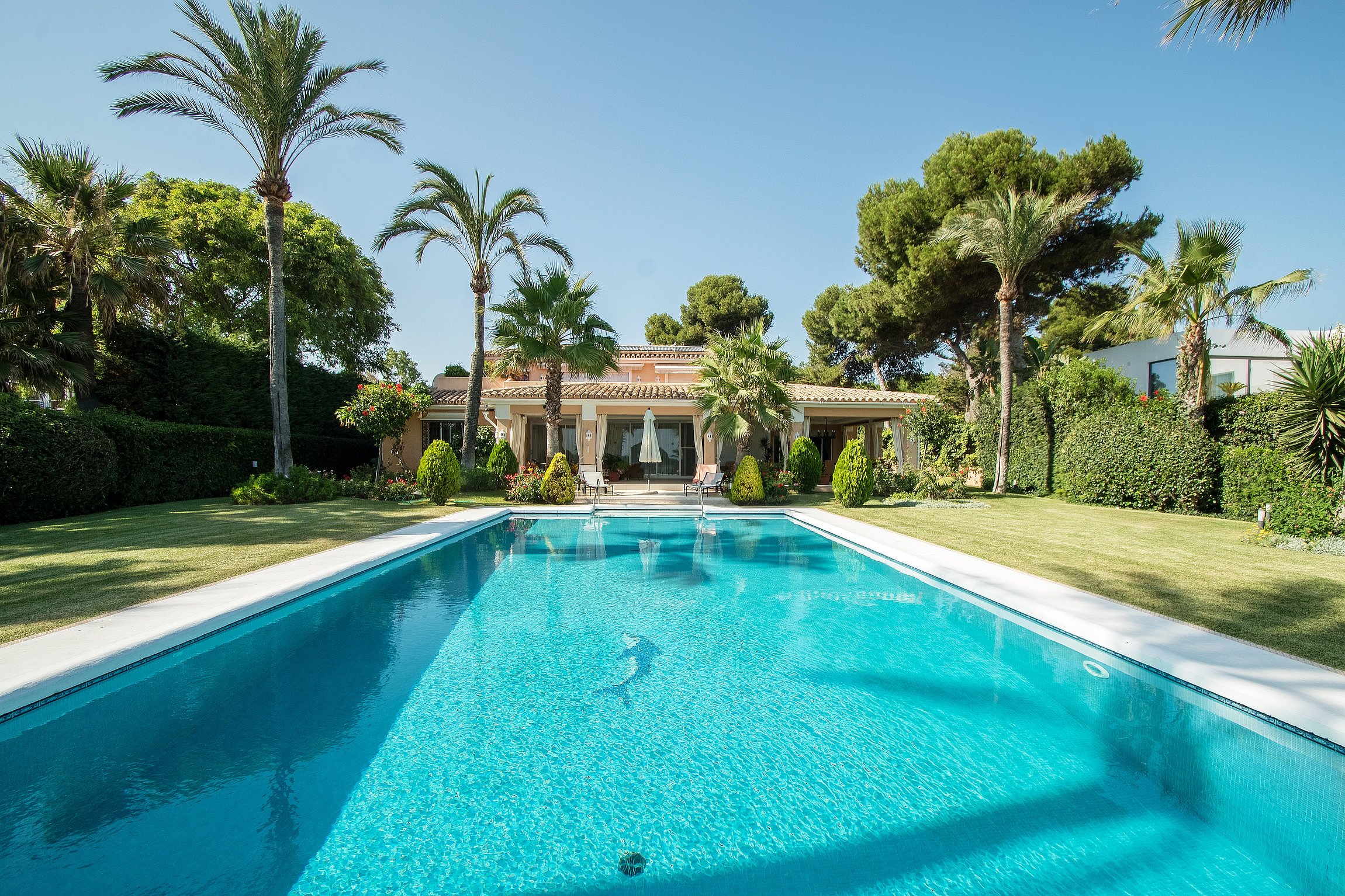 This unique property is situated on a prime 1st-line beach plot in the trendy and luxury area of El Paraiso. Set within an expansive 5,000 m² estate—a rarity in the holiday rental market—this villa offers direct private access to the sand, surrounded by modern luxury villas in a quiet, high-end neighborhood.