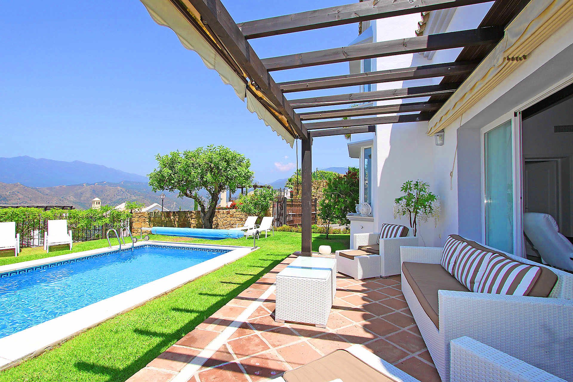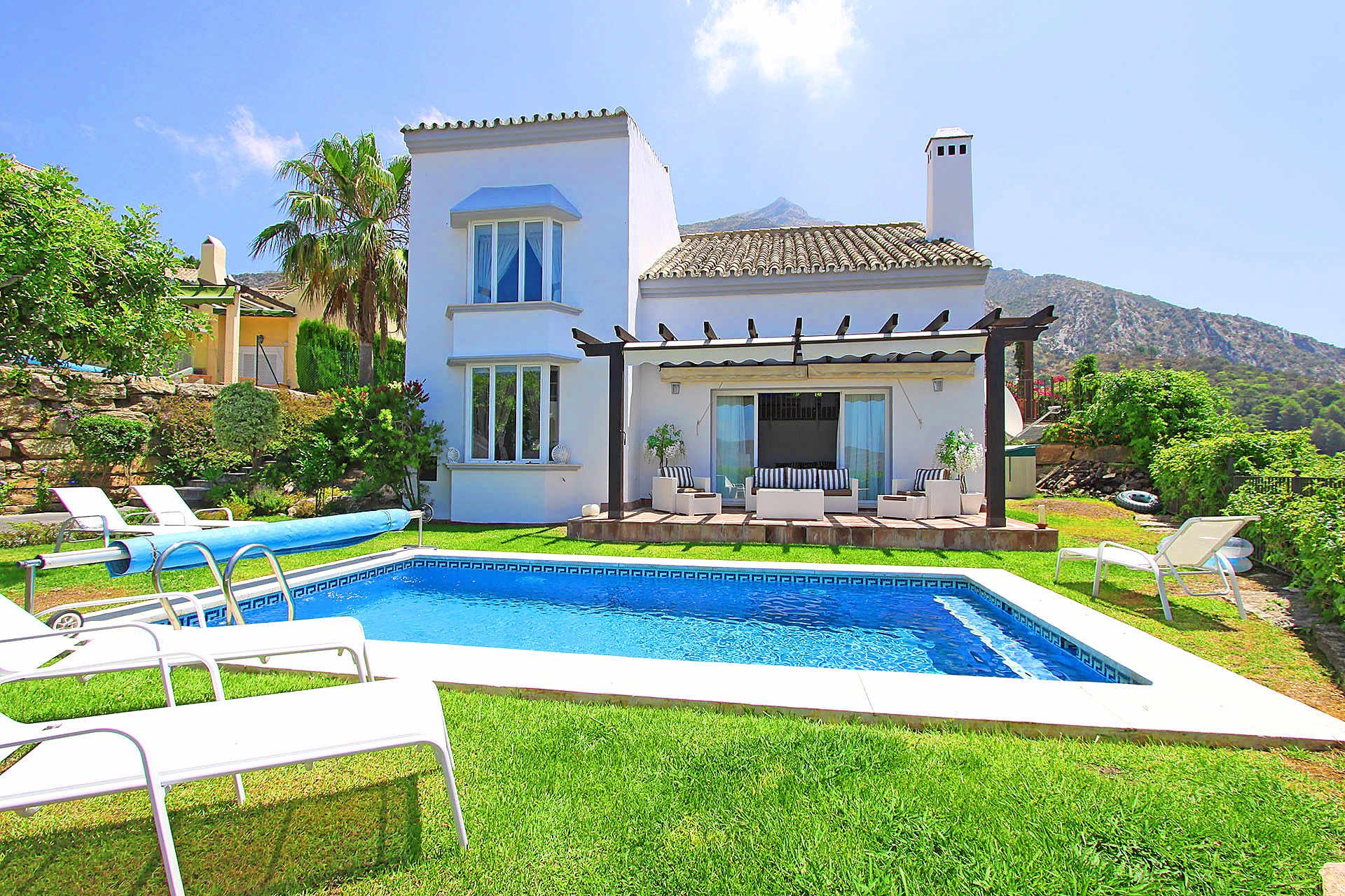 A mountain paradise overlooking the sea: A luxury 3-bedroom villa in the exclusive Sierra Blanca Country Club, featuring a heated pool and romantic panoramic views of the lake and Mediterranean coast.