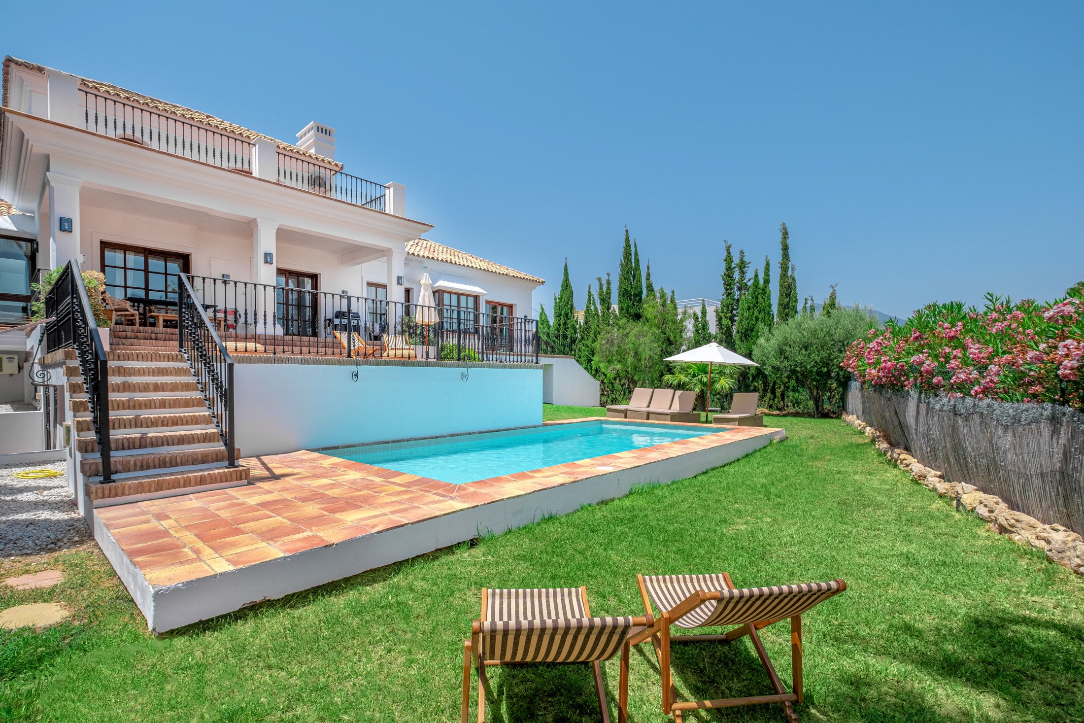Experience the elegance of 'The Beverly Hills of Spain' in this grand 3-level Andalusian villa, offering breathtaking mountain views, a private pool, and limitless potential in the heart of Nueva Andalucía’s Golf Valley.