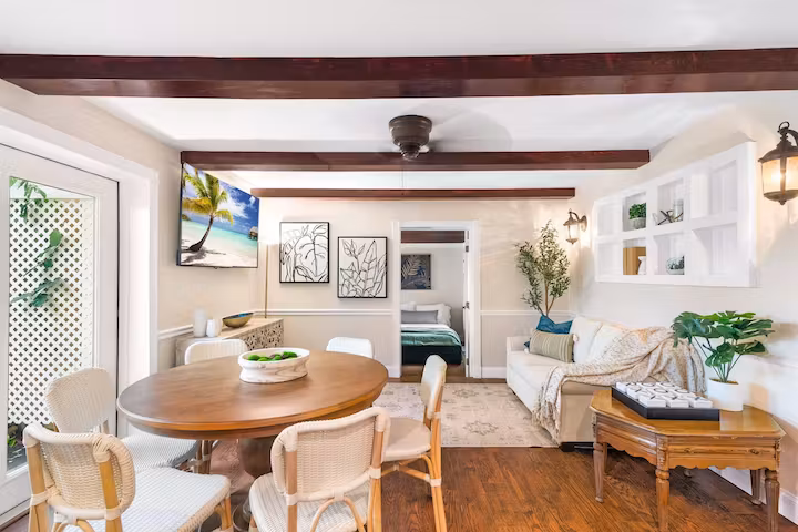 House Two: A cozy yet luxurious secondary home with three bedrooms and a full bathroom, including its own private kitchen and living space.