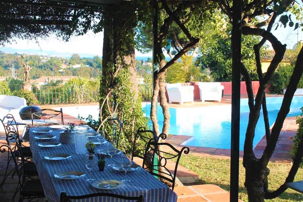 Experience ultimate privacy and walk-to-everything convenience in this premier Nueva Andalucía villa, featuring a hotel-sized private pool and breathtaking panoramic views of the Mediterranean and La Concha mountain.