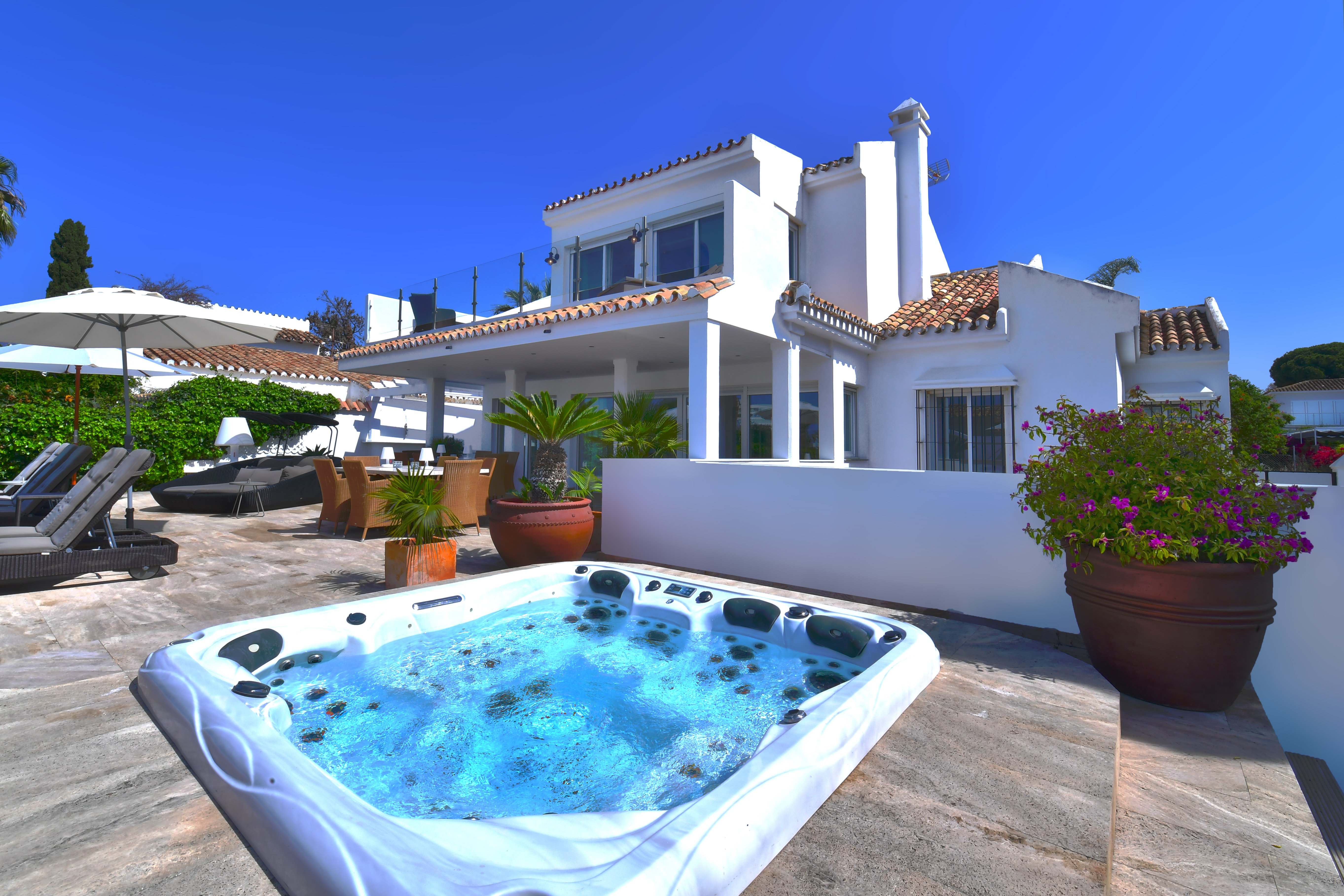 A Mediterranean Oasis: A newly renovated 6-bedroom luxury villa combining modern elegance with Andalusian charm, featuring a heated pool, private jacuzzi, and panoramic sea views in the heart of the Costa del Sol.