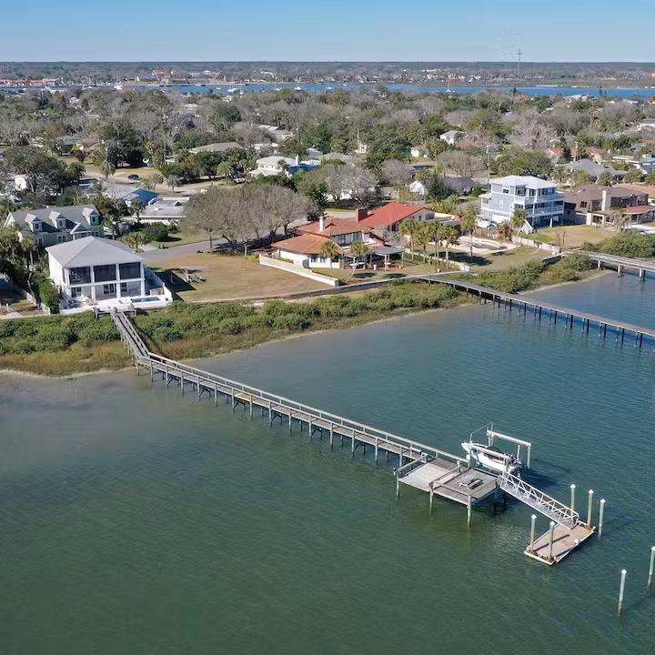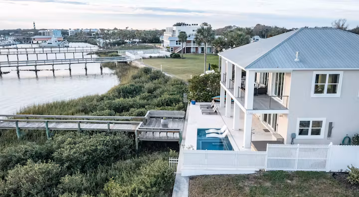 A front-row seat to the Atlantic’s wonders: One of Anastasia Island’s newest luxury additions, featuring a massive private pier, a sleek contemporary design, and a poolside oasis just steps from St. Augustine’s historic heart.