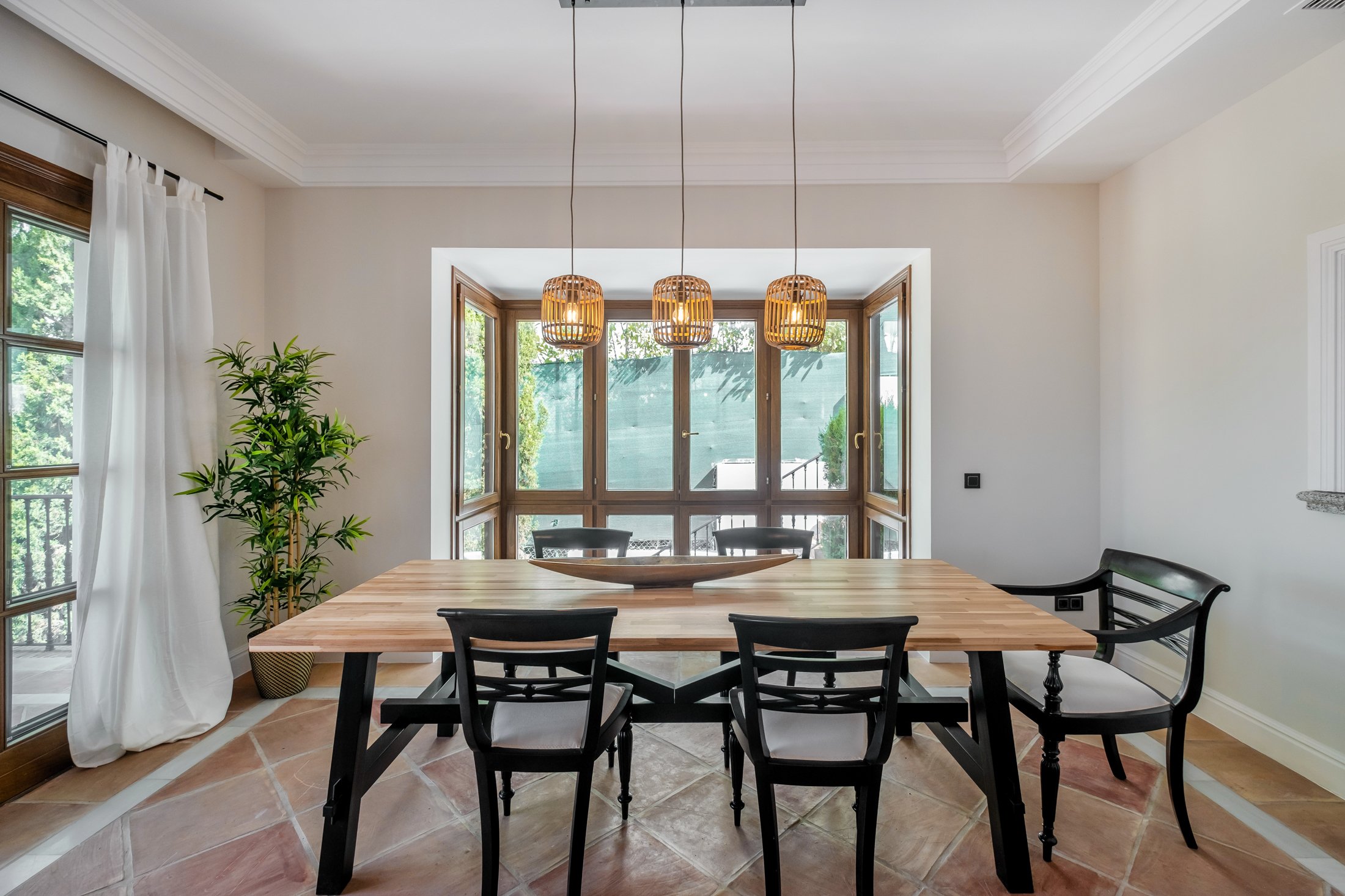 Kitchen: A separate, traditionally styled Andalusian kitchen, thoughtfully designed with a service window to maintain a connection with the living area.