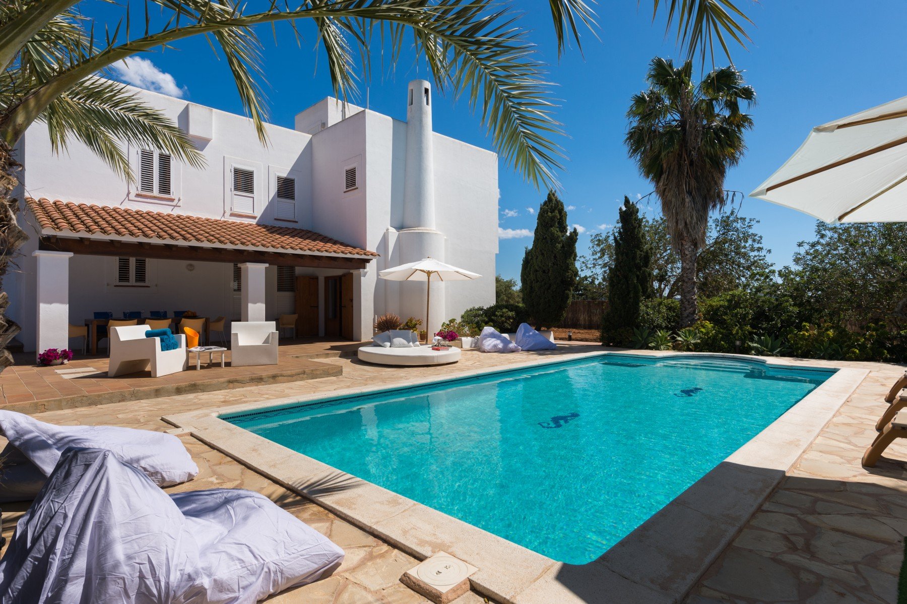 Situated in a peaceful, family-friendly neighborhood, this homely and fully equipped villa offers a rare combination of massive living space and proximity to Ibiza’s most iconic spots. With views stretching from the mountains to the sea, the property provides a serene retreat while being just a short drive from the island's best beach clubs, golf courses, and the historic charm of Ibiza Town.