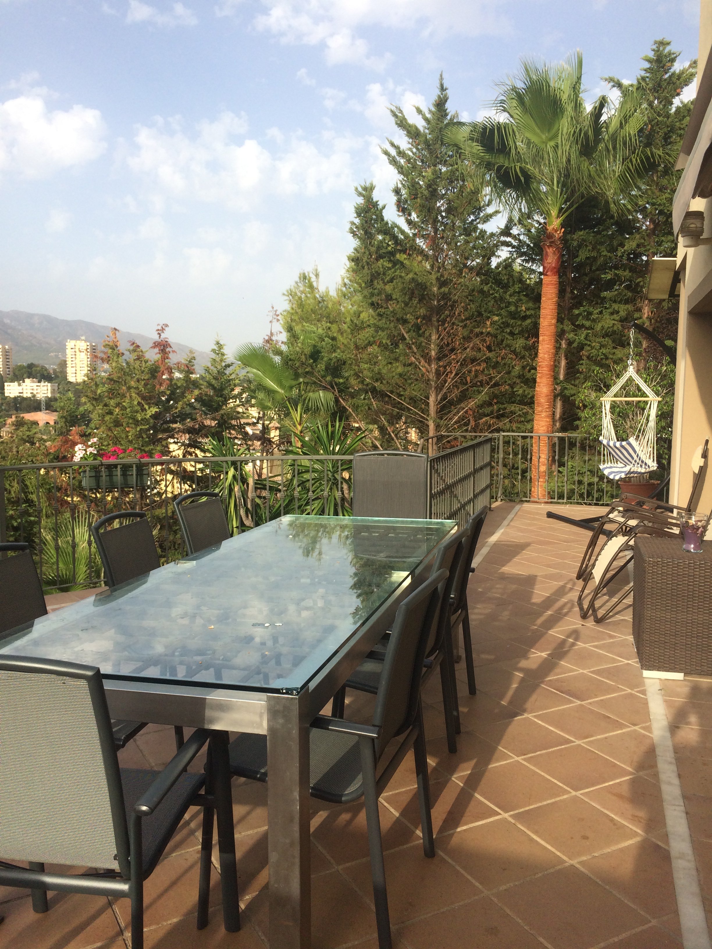 The Upper Terrace: A covered outdoor space leading from the kitchen, offering fantastic views of the Golf Valley and the La Concha mountains—perfect for shaded lunches.