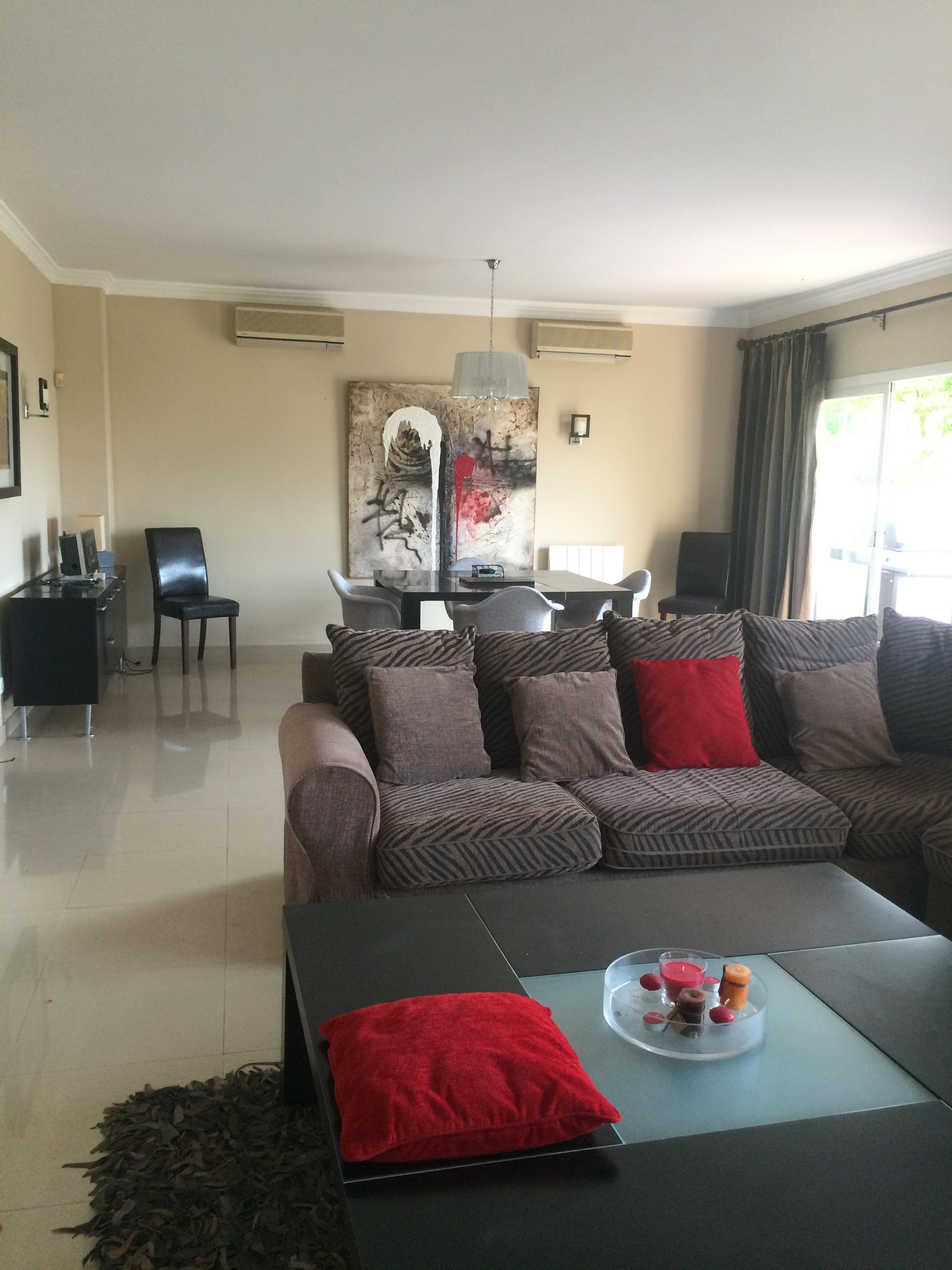 Amenities: Full air conditioning throughout the property, washing machine, iron, and a dining area that comfortably seats 8–10 people.